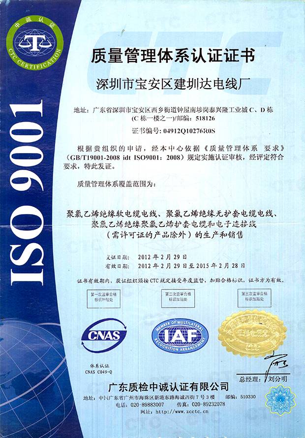 建圳達電纜立足于中國深圳,擁有技術精湛的隊伍、現代化生產設備、精密的檢測儀器,從原材料、生產、成品嚴格按照國家標準檢測,通過多個認證。